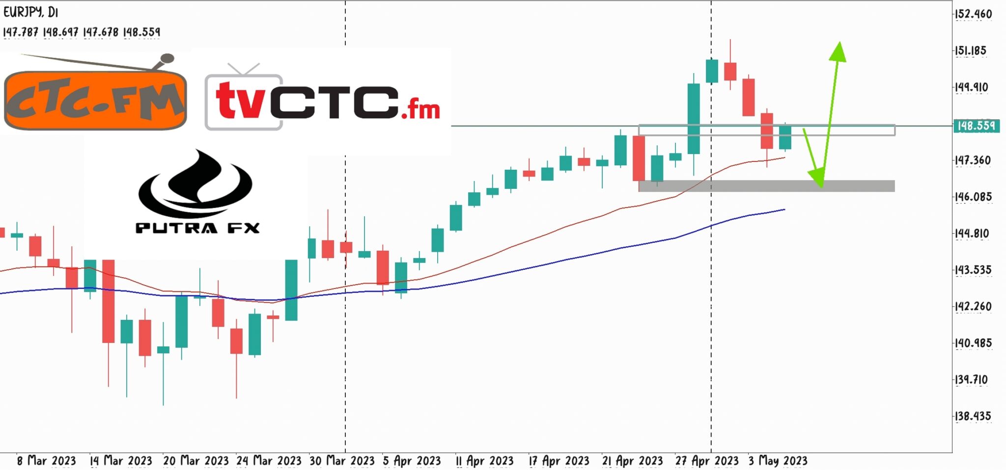 - Peluang reentry buy di support semasa. Tunggu sehingga munculnya setup Price Action seperti Bullish Engulfing atau Pin Bar di zone reentry tersebut sebelum melakukan sebarang reentry.