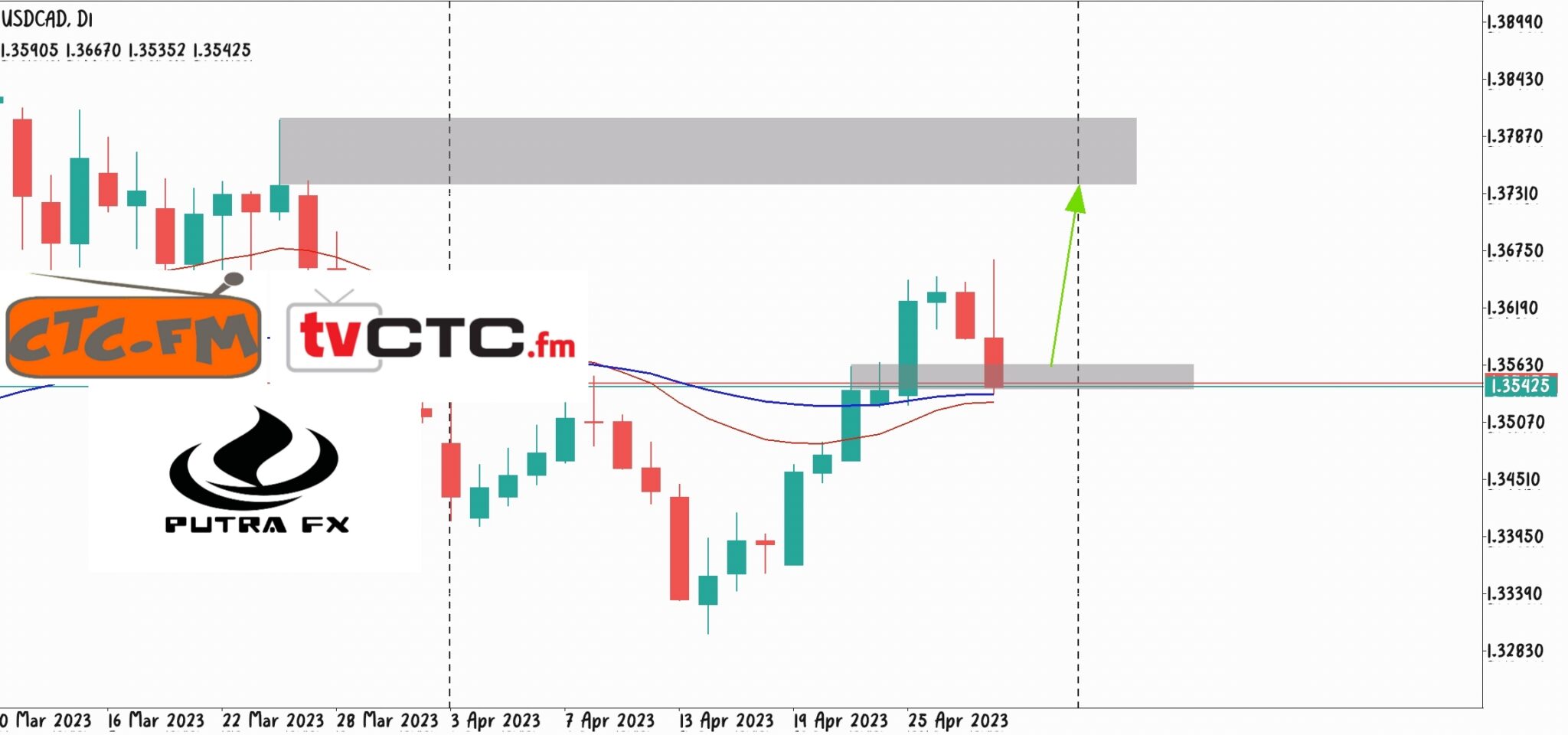 - Harga juga telah berjaya break dan close diatas Resistance (ketika ini telah menjadi RbS) dimana ianya menunjukkan bahawa harga mempunyai momentum untuk meneruskan kenaikan.