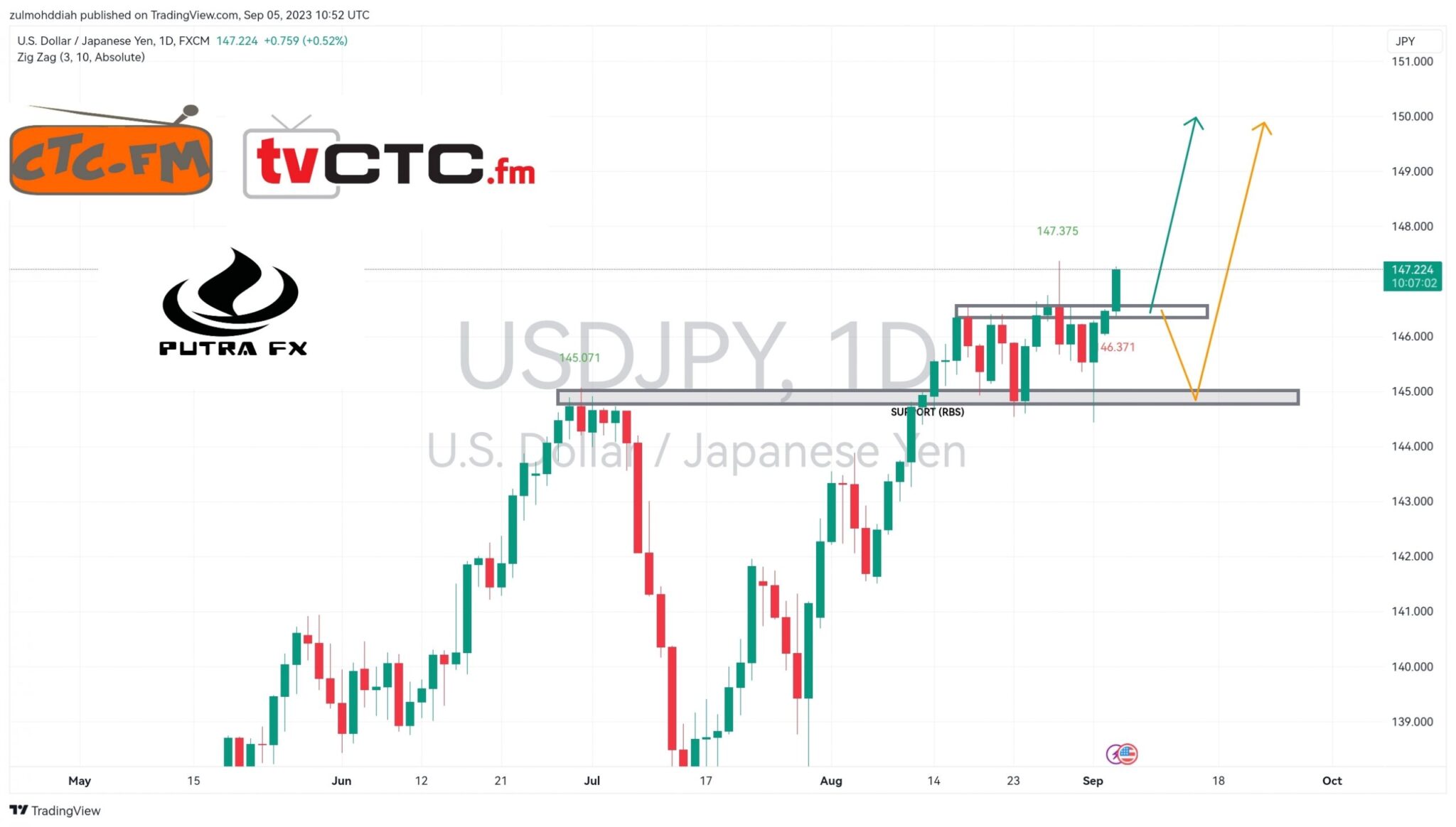 - Sepertinya harga ingin break dan close diatas Minor Resistance semasa. (untuk comformation, sila tunggu harga pada hari ini close).