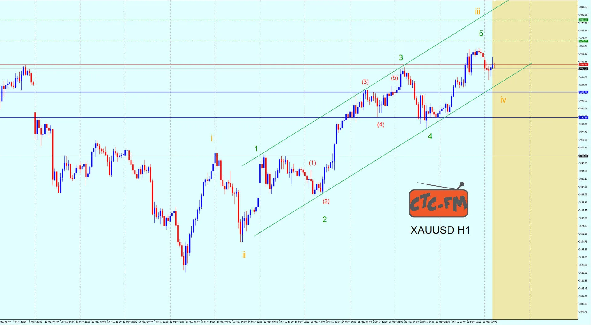 Harga sedang membentuk wave 4 dalam wave 5 (hijau). Satu lonjakan terakhir dijangka berlaku bagi melengkapkan wave ini, dengan dua sasaran harga: