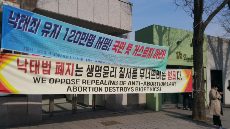 Sehingga 2019, Korea Selatan merupakan antara negara perindustrian yang mengkriminalkan pengguguran secara meluas kecuali dalam kes rogol, sumbang mahram atau apabila nyawa ibu terancam. Namun, pada tahun tersebut, Constitutional Court of Korea memutuskan larangan lama itu bercanggah dengan perlembagaan dan mengarahkan undang-undang dipinda bagi membenarkan pengguguran sehingga 22 minggu kehamilan. Bagaimanapun, kebuntuan politik di Parlimen menyebabkan pindaan itu masih belum digubal, sekali gus mewujudkan kekosongan undang-undang sehingga kini.