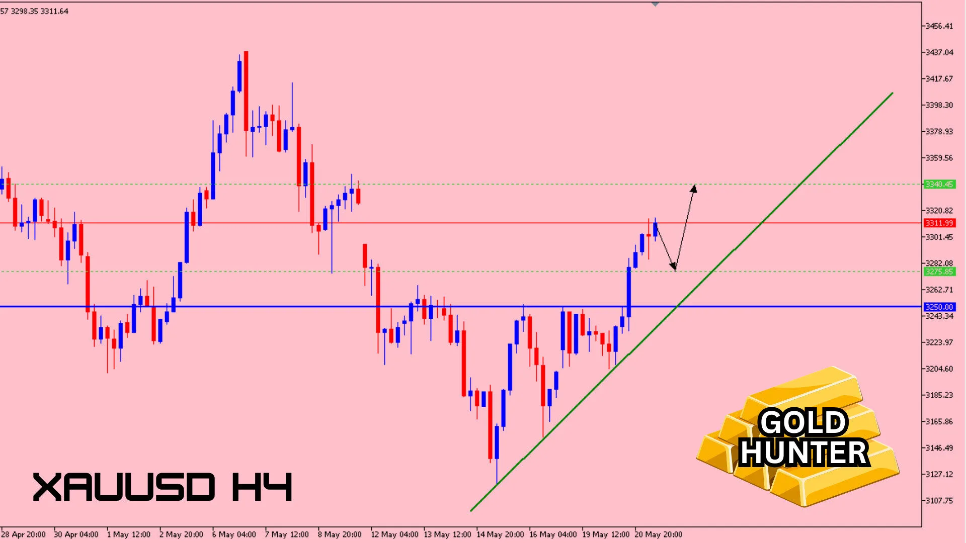 Purata pergerakan (moving average) emas terus menunjukkan arah menaik dan semakin melebar, menandakan kekuatan belian (bulls) masih kukuh. Penurunan harga emas dilihat sebagai peluang untuk memasuki posisi beli (long). Kini, emas berada pada zon peralihan antara sokongan dan rintangan di sekitar 3275–3285.