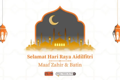 Selamat Hari Raya Aidilfitri Maaf Zahir & Batin buat semua pembaca dan pengunjung CTC FM. Semoga segala amal tuan-tuan dan puan-puan diterima dan segala dosa diampunkan. Di kesempatan ini, kami menyusun sepuluh jari memohon maaf atas segala kekurangan. InshaALLAH Aidilfitri ini lebih bermakna buat semua.
