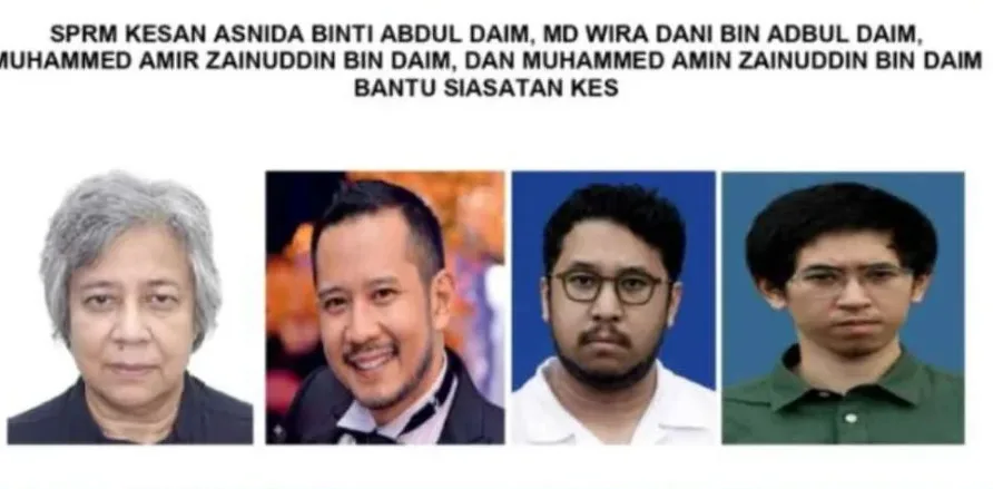Dalam satu kenyataan hari ini, SPRM menamakan empat individu tersebut sebagai Asnida Abdul Daim, Md Wira Dani Abdul Daim, Muhammed Amir Zainuddin Daim dan Muhammed Amin Zainuddin Daim. Bagi memudahkan usaha pengesanan, suruhanjaya itu turut mendedahkan alamat terakhir yang diketahui bagi setiap individu serta melantik pegawai penyiasat khusus untuk menerima maklumat daripada orang awam.