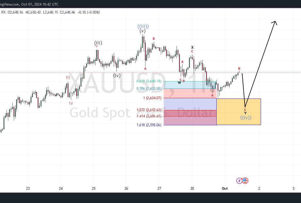 Kemas kini gelombang Elliott Wave Emas mencadangkan gelombang B of Y akan diselesaikan tidak lama lagi selagi harga kekal berada dibawah $2665 dan untuk melihat satu gelombang penurunan ke arah $2623 – $2605 untuk melengkapkan seluruh WXY Corrective Wave ini sebelum pendakian bersambung semula.